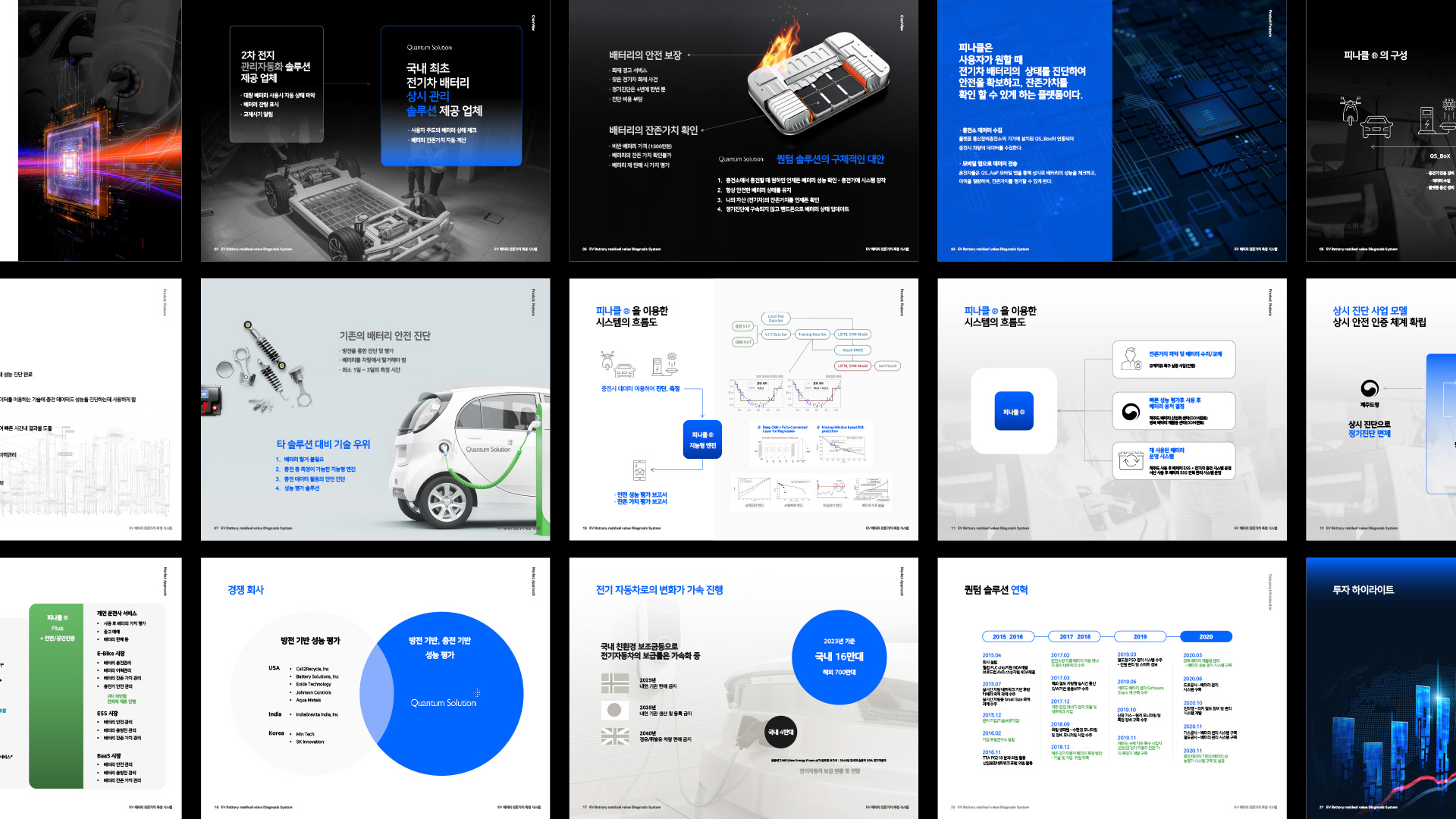 Quantum Solutions is a real-time energy communication module and energy performance prediction S/W development company. We are focusing on developing and distributing the EV battery residual value measurement system. With the slogan of smart with IoT, more efficient with Quantum Solution, ir report, brand and web were developed together with Soulbread.