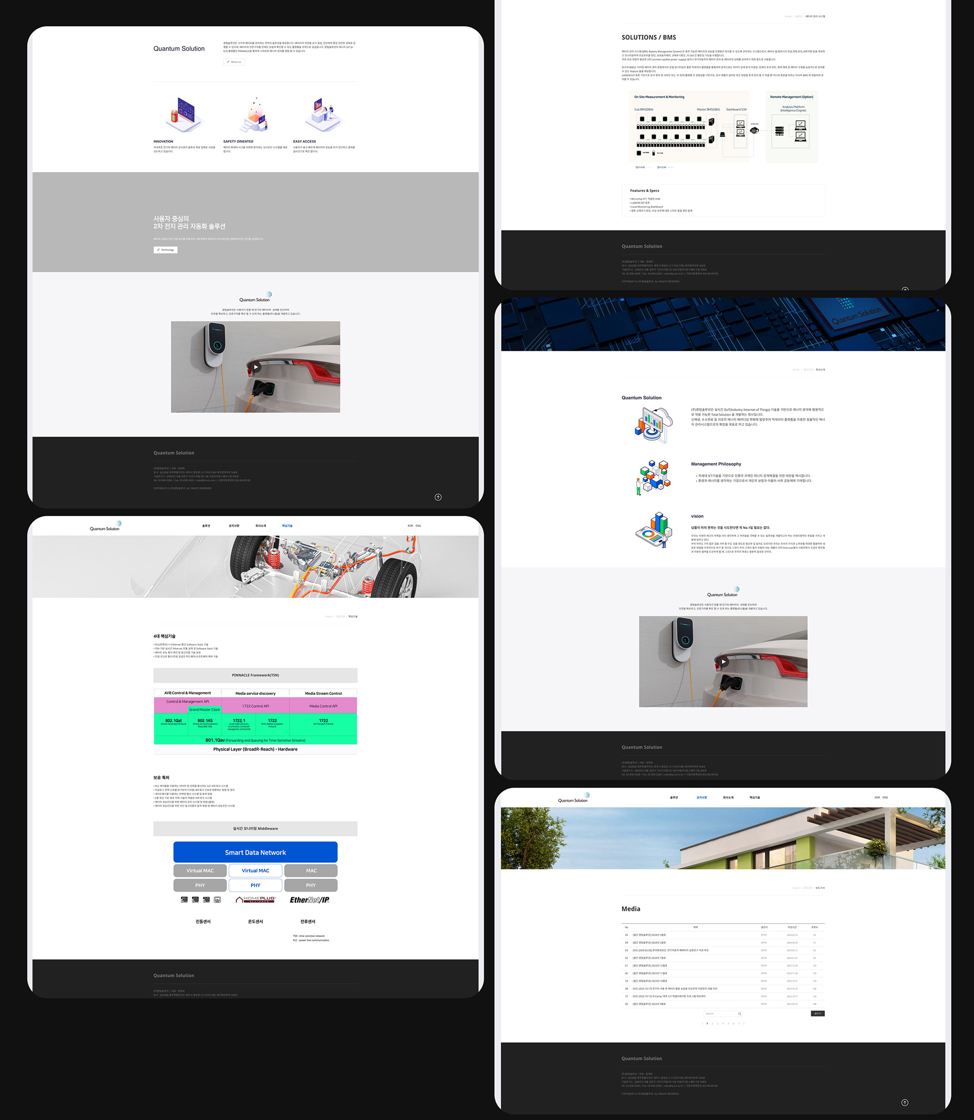 퀀텀 솔루션은 실시간 에너지 통신 모듈 및 에너지 성능 예측 S/W개발 기업입니다. EV배터리 잔존가치 측정 시스템을 개발 보급하는데 주력을 하고 있습니다.smart with IoT, more efficient with Quantum Solution라는 슬로건으로 ir report와 브랜드 그리고 웹사이트를 소울브레드와 함께 개발했습니다.