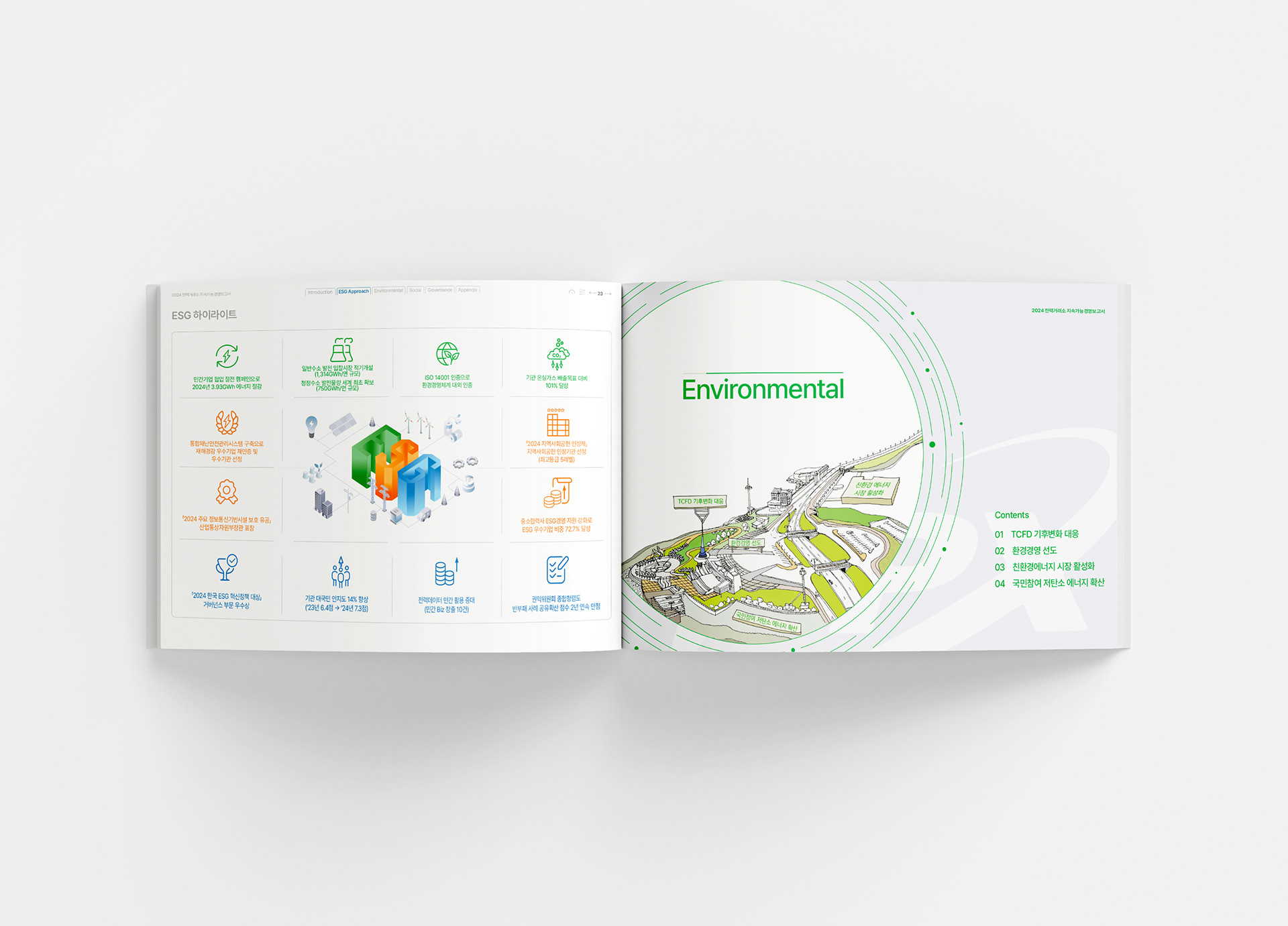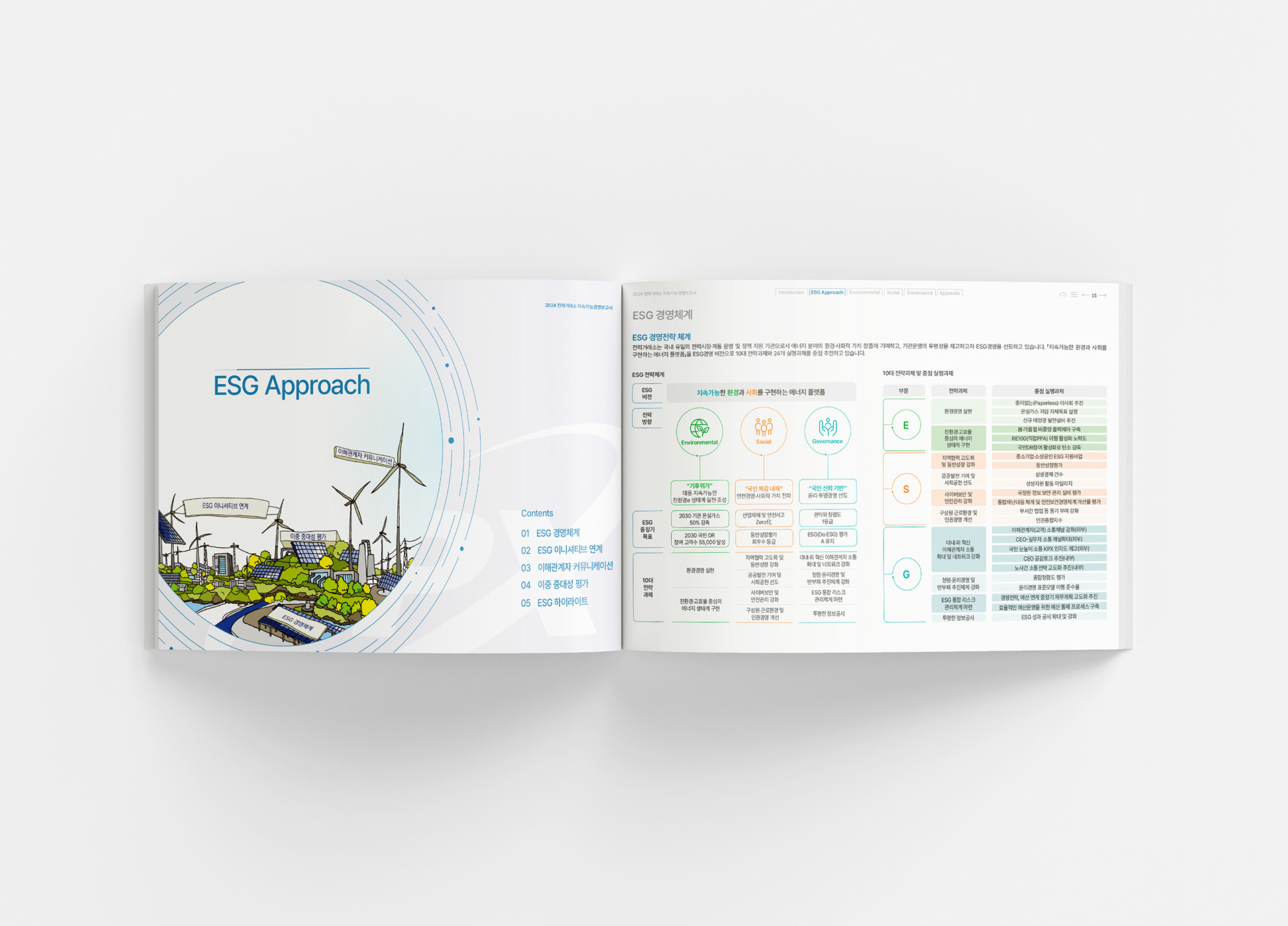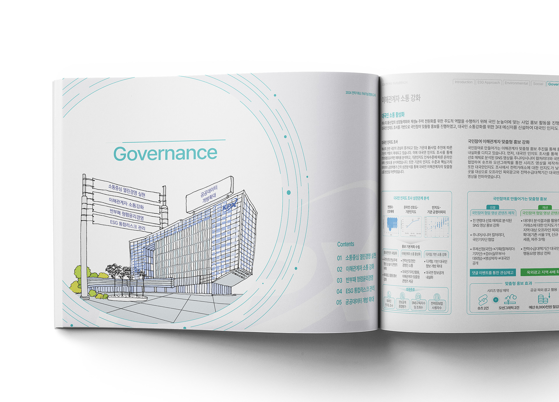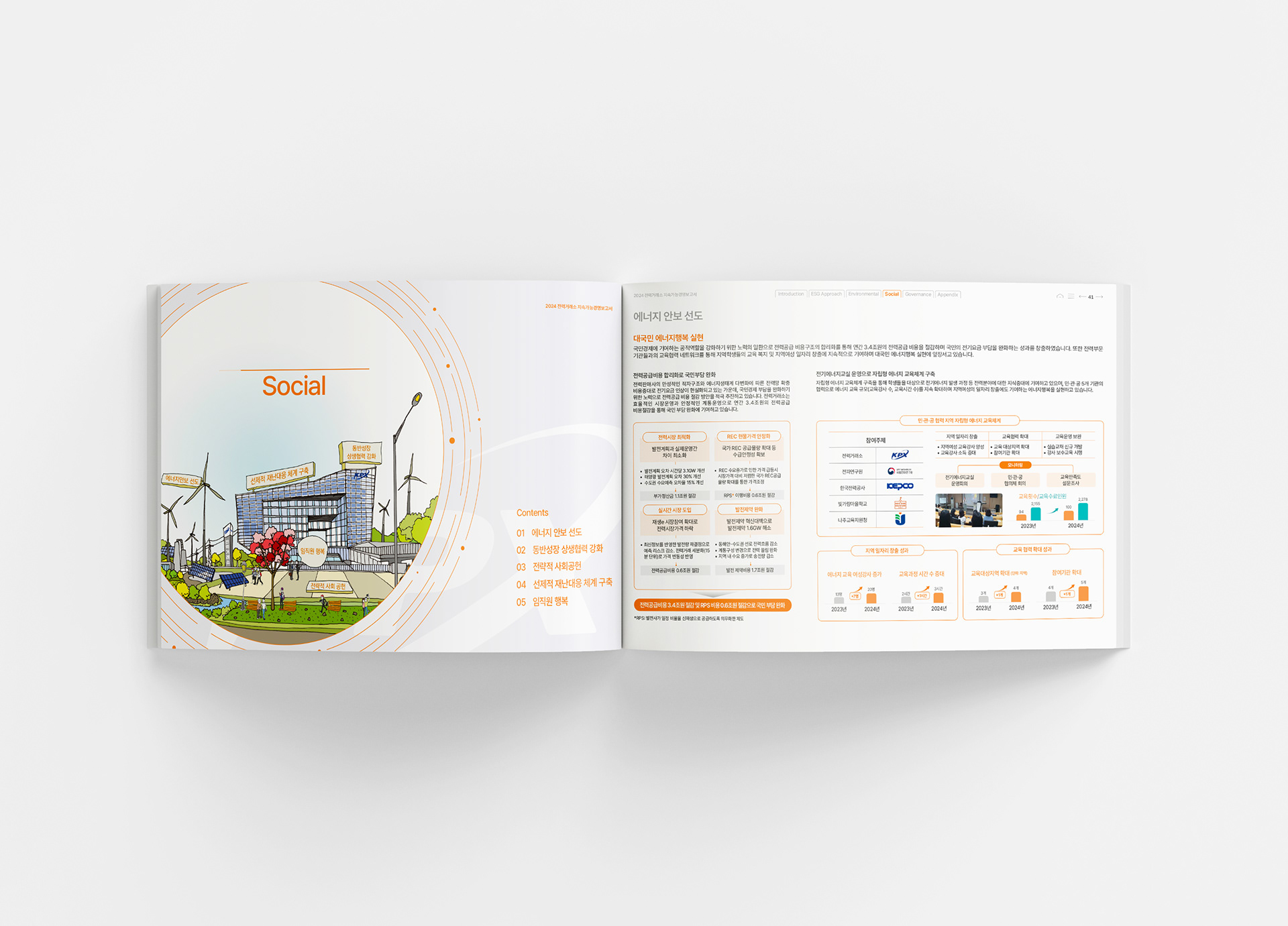 본 지속가능경영보고서는 소울브레드와의 협업으로 제작되었으며, 소울브레드는 보고서 전반의 메인 비주얼과 전환 페이지의 핵심 디자인을 담당했습니다. 이를 통해 한국전력거래소의 비전과 ESG 메시지가 일관되고 명확하게 전달될 수 있도록 디자인적 방향성을 제시했습니다.